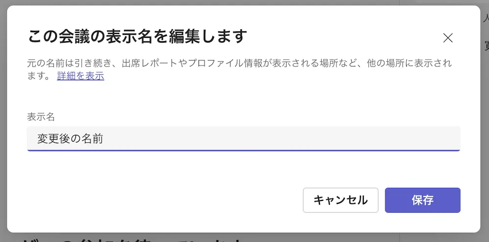 表示名の変更は,会議の開始後に行うことができます.変更すると,その会議の間は,変更後の表示名が表示されます.