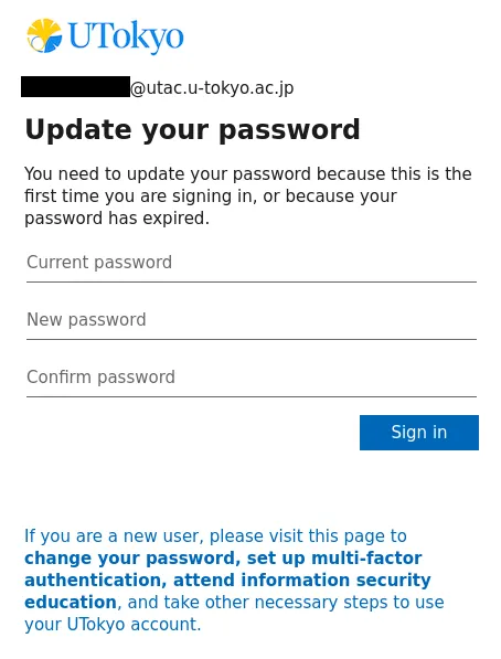 @utac.u-tokyo.ac.jp) and the temporary password.If the sign-in screen does not appear