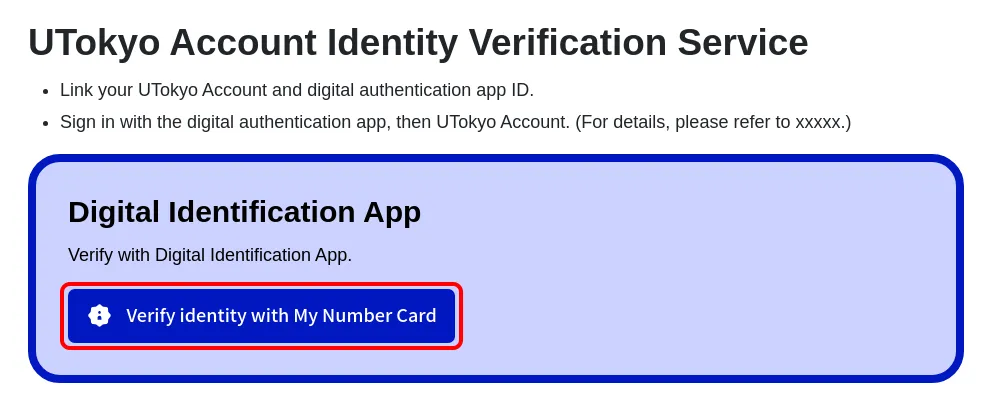 - You have completed the pre-link process for the UTokyo Account Identity Verification Service.