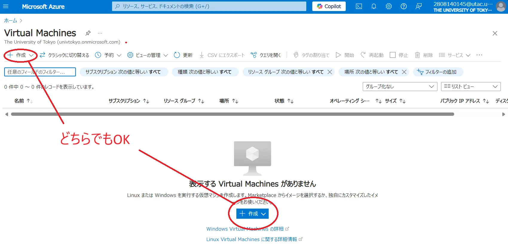 Azure portalにUTokyo Accountでログインし,リソースの欄にサブスクリプションがない場合(下図参照),先に以下のURLからサブスクリプションを申請してください.
