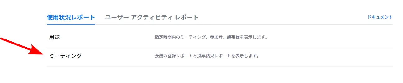 - 自分のスケジュールしたミーティングが,リストとして表示されます.登録者の回答を閲覧したいミーティングの名前を押してください.